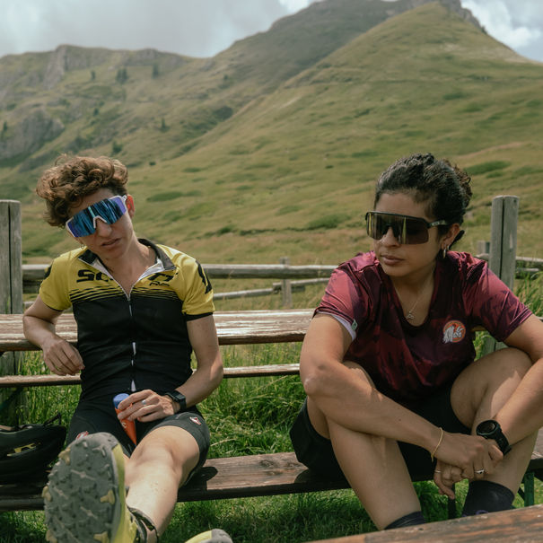 This is when the real adventure started, we met all-together at 9 to start climbing. We ended up the last tarmac section at Le Marmotte, where we stopped for a quick snack and some pictures. As we started moving forward the mountains started to show up, the landscape really became magical and alpine, the roads became a bit rocky which felt even more immersive, those kilometers until Refugio Barbera were pure mountain bliss, and the best part was we made it to our rhythm, I even crossed paths with Sophie which I wasn't expecting at all!